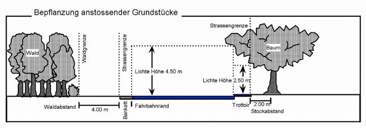 26.03.2026 Salmsach: offizielle MitteilungenDas Strassengesetz verlangt, dass Bäume und Sträucher längs öffentlicher Strassen und Wege regelmässig zurückgeschnitten werden müssen. Es dürfen keine Zweige und Äste in den Strassenraum hineinreichen. Über dem Trottoir ist ein freier Raum von 2,50 m und über der Strasse ein solcher von 4,50 m ohne jegliche Behinderung einzuhalten.