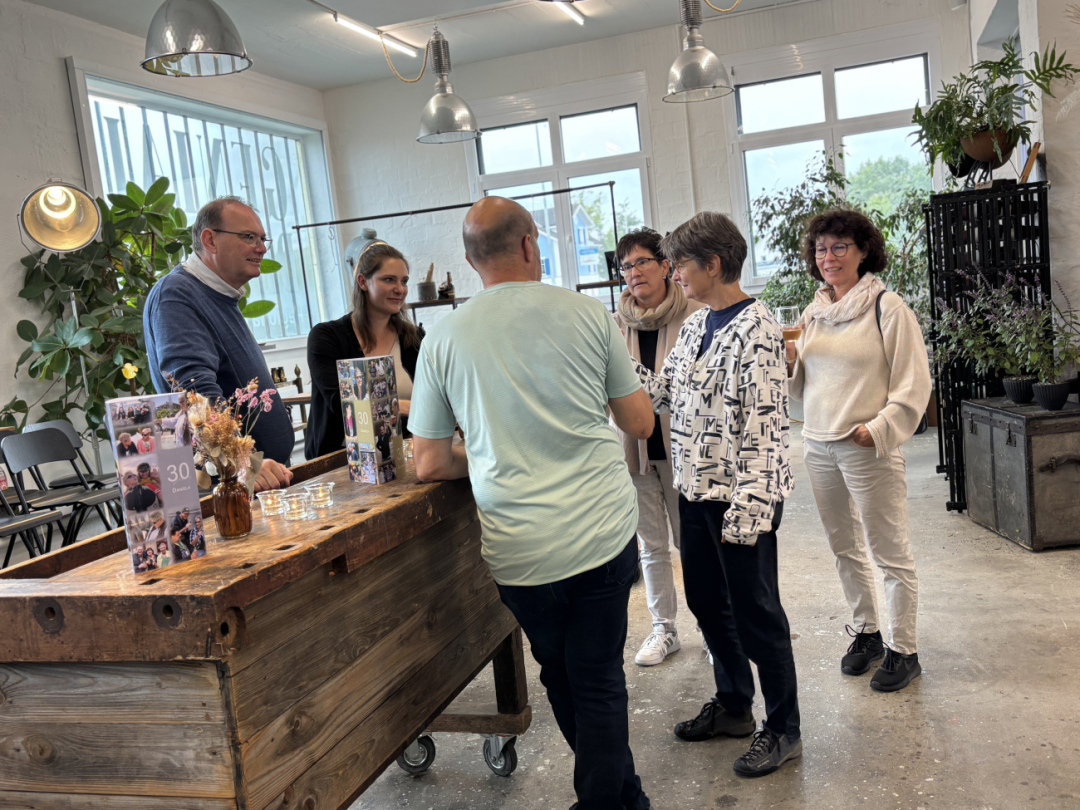 Beim Apéro blickte Firmeninhaber Stefan Ströbele vor versammelter Mannschaft auf die insgesamt 80 Jahre Firmentreue der Jubilierenden zurück, die fast einer Weltreise gleichkommen. Einer Reise durch die Welt der Drucktechnik, des Designs und der engen Zusammenarbeit.