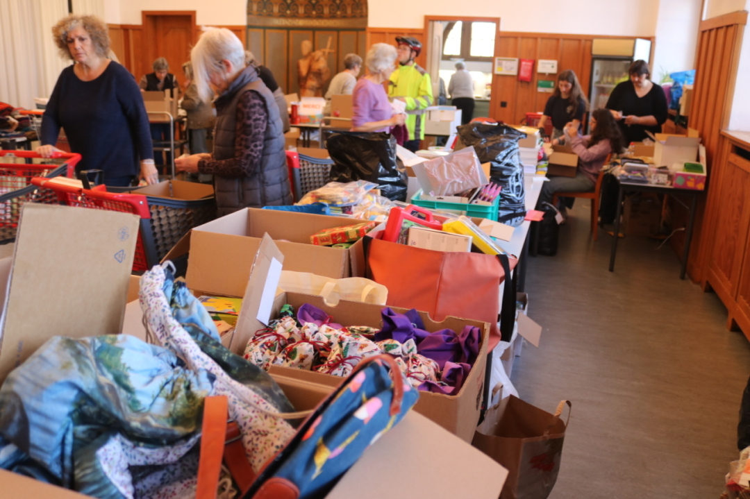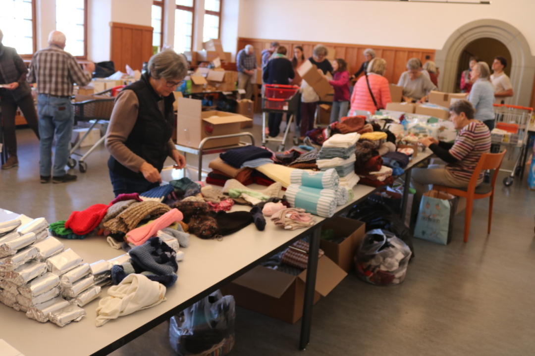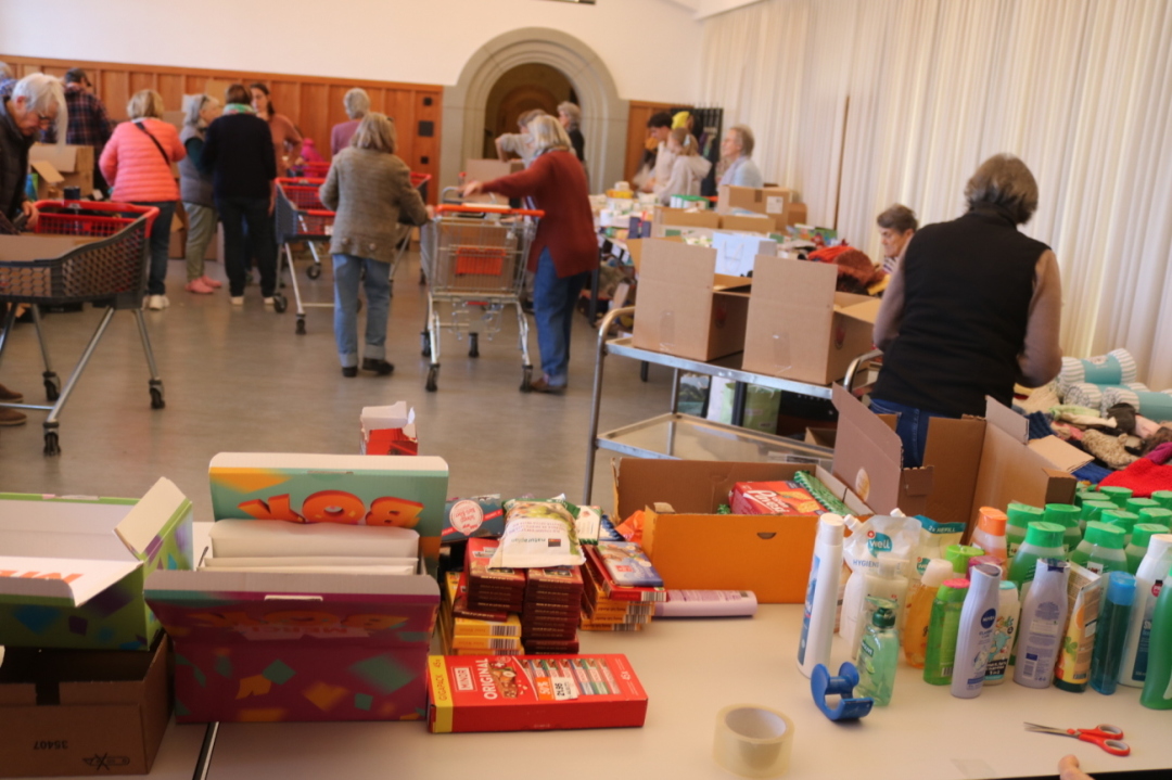 20.11.2025 Kirchen, RomanshornSie waren unterwegs im Coop, im Hubzelg und in der evangelischen Kirche: 60 Helferinnen und Helfer haben am Samstag den Einkaufenden das Projekt «Aktion Weihnachtspäckli» vorgestellt. Eingekaufte und gespendete Produkte wurden laufend in die Kirche gebracht. Dort stellten fleissige Hände Pakete für Kinder und Erwachsene zusammen: «Die älteste Helferin ist über 90 Jahre alt, der Jüngste zählt zehn Jahre und mit dabei ist auch eine Familie, die Grossmutter, Mutter und drei Töchter. Die Päckli gehen zuerst in ein Verteilzentrum und Ende November in die Ukraine und nach Moldawien. Wir sind stolz und dankbar für die grosse Unterstützung für dieses Projekt, wir können aus Romanshorn 624 Pakete weitergeben und damit Weihnachtsfreude nach Osteuropa bringen», sagt Vreni Arn vom Organisationsteam.