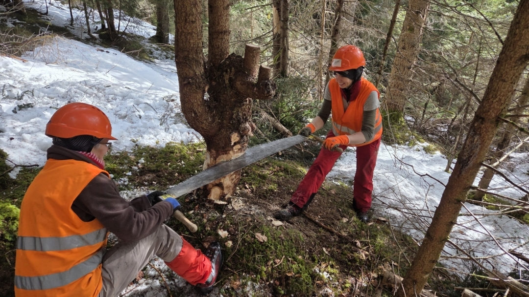 Durch ihre aktive Mitarbeit erleben die Freiwilligen den Bergwald aus einer vertieften Perspektive: Unter fachkundiger Anleitung leisten sie nicht nur einen direkten Beitrag zu seinem Erhalt, sondern schulen zugleich ihr Verständnis für die Zusammenhänge in der Natur.