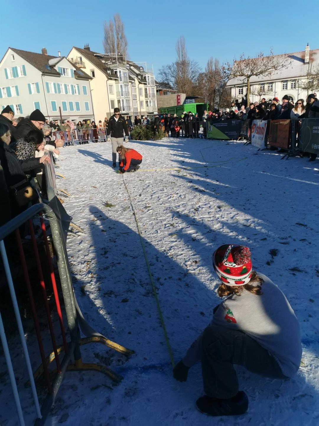 Sehr viel Spass machte das Werfen auch den Kindern. Unglaublich viele Mädchen und Buben machten mit; die Kleinste erst einjährig. Bei den grösseren Kindern gewann Julius Hertel, bei den kleineren Koan Erdem. Alle waren happy und freuten sich über diesen Ausklang der Weihnachtsferien. Die Bäume werden danach fachgerecht entsorgt.