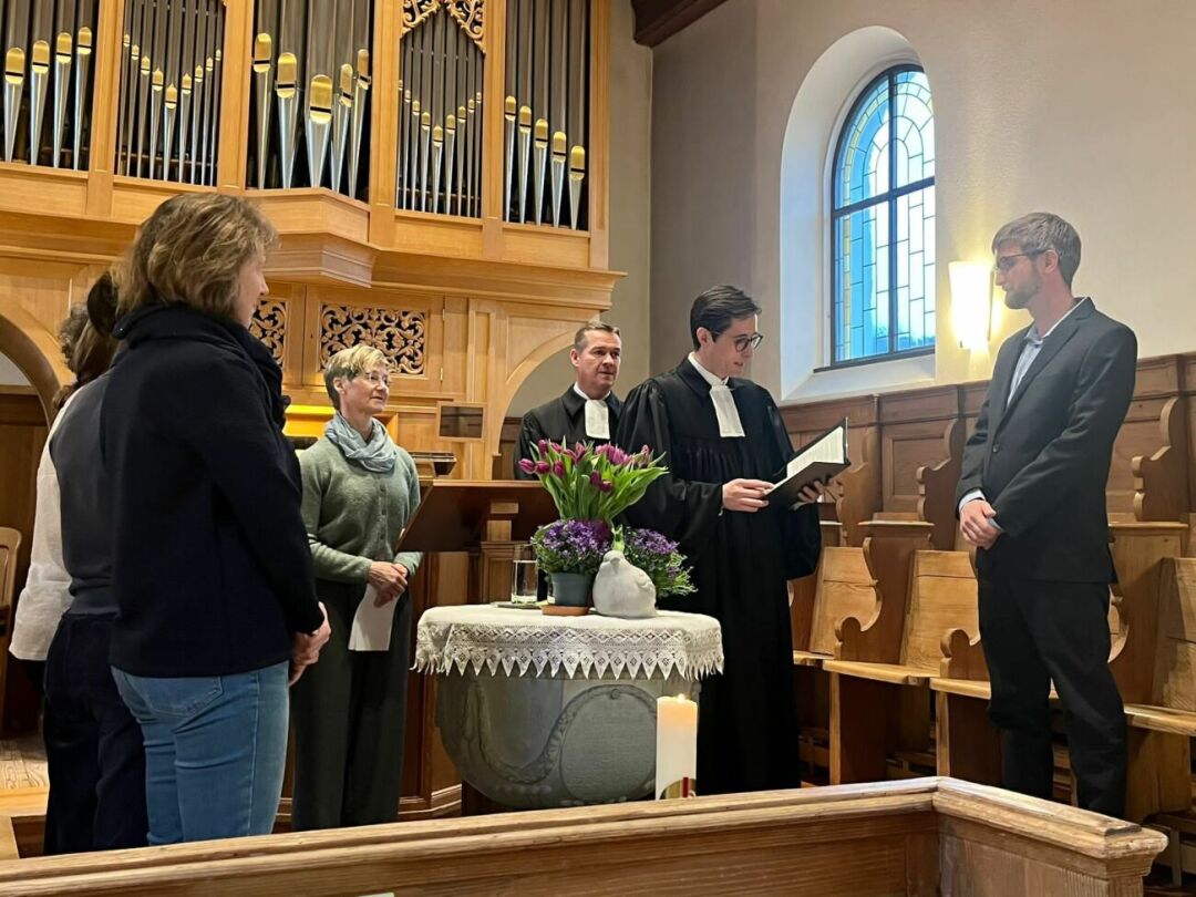 Dekan Matthias Maywald war für die offizielle Amtseinsetzung verantwortlich. Er verpflichtete, ermächtige und ermutigte den neuen Diakon in seinem Amt. Die Mitglieder der Kirchenvorsteherschaft und des Seelsorgeteams bekräftigten ihrerseits per Handschlag, ihren Diakon zu unterstützen und gemeinsam Wege zu finden und gute Lösungen für die Gemeinde zu erarbeiten. Im Anschluss genossen die Besucher die feinen Fisch-«Chnusperli» in der gemütlichen «Aachstube» und pflegten einen regen Austausch.