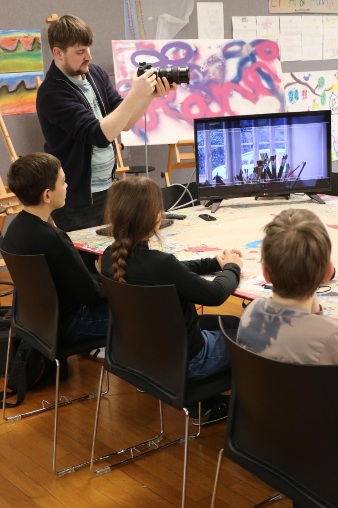 05.02.2026 Schule&Bildung, RomanshornMöglich gewesen wären acht Angebote im Talenticum: Schliesslich tauchten neun Kinder während der Sportferien in ein für sie neues Thema ein: Mit Dominik Zulian gingen die einen auf eine Reise in «die Welt des Films» und erfuhren Grundlegendes zu Filmset, Drehplan, Ablauf und Handhabung einer Kamera, bevor sie dann selber ausprobieren konnten.