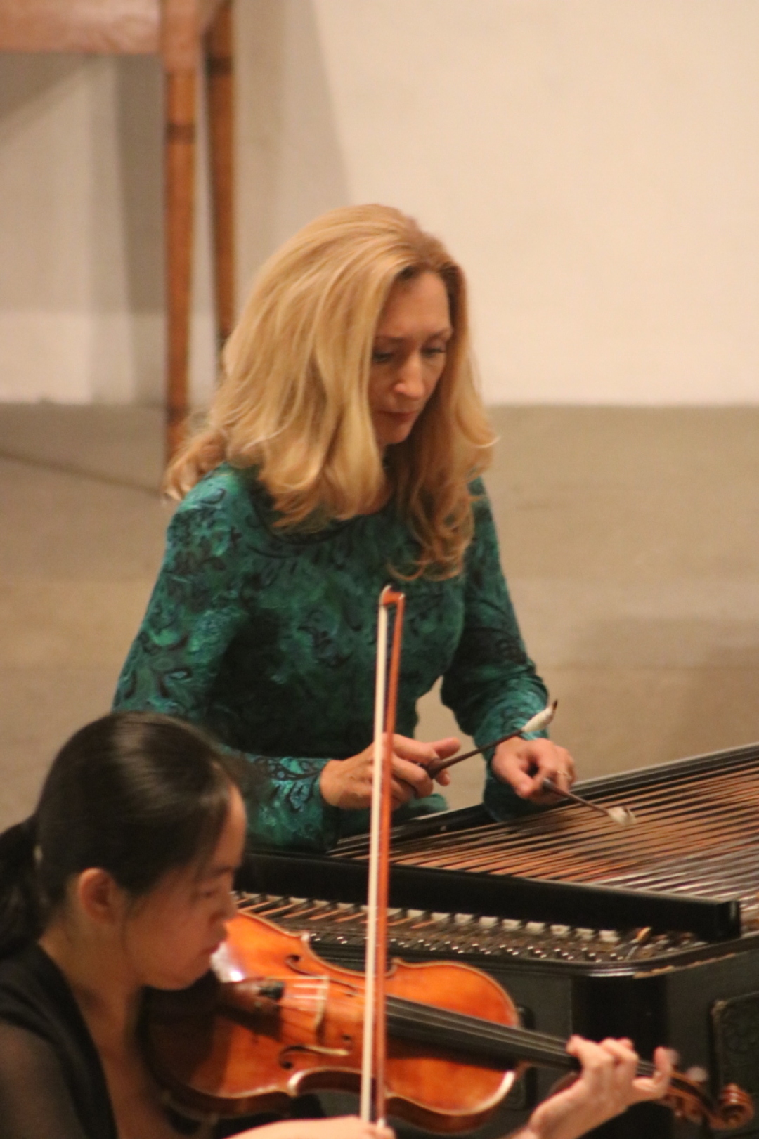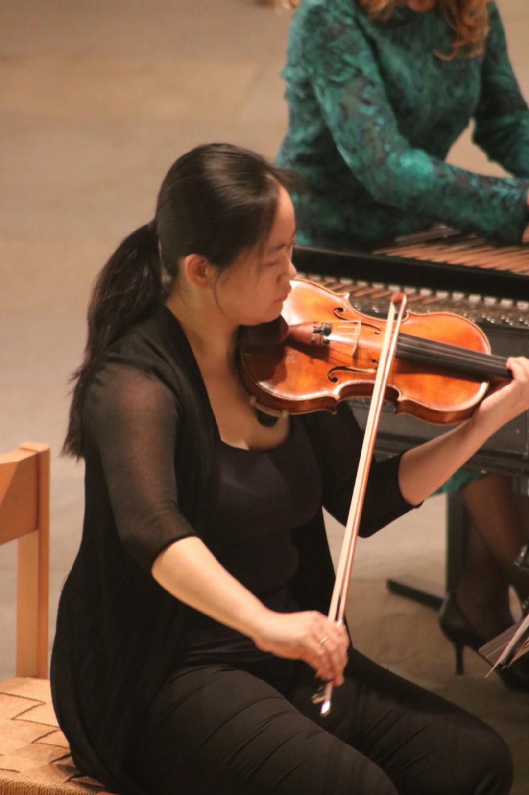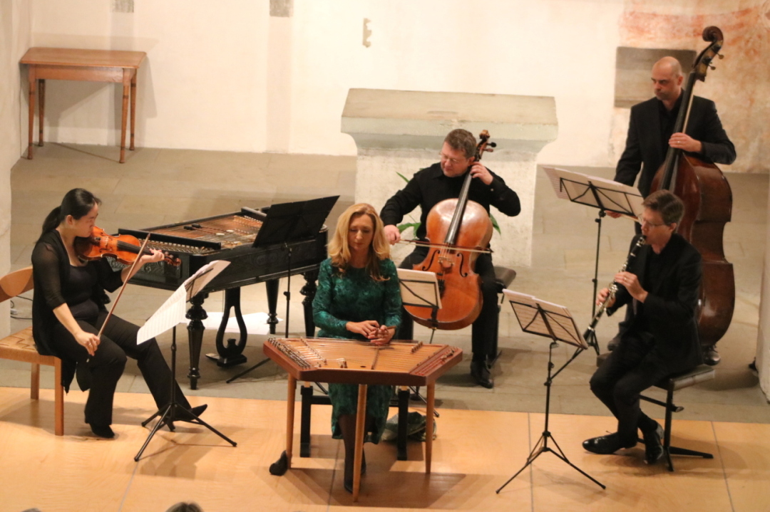 Den Hauptteil bestritten (von links) Yi-Chen Lin (Violine), Olga Mishula (Cimbalom und Cimbaly), Sasha Neustroev (Violoncello), Kamil Losiewicz (Kontrabass) und Livio Russi als Ersatz für Florian Walser (Klarinette): Sie präsentierten 16 ungarische Tänze von Johannes Brahms (für das Quintett von Florian Walser bearbeitet) und sie taten dies mit einer derart beeindruckenden Virtuosität und Spielfreude, dass die Besucherinnen und Besucher dies mit Standing Ovations belohnten. Desgleichen gilt für die Ungarische Rhapsodie Nr. 2 von Franz Liszt, arrangiert für Quartett und Cimbaly-Solo: Und da brillierte eine überragende Olga Mishula dergestalt, dass man sich in dieses bespielte Land und Zeit versetzt fühlen durfte.