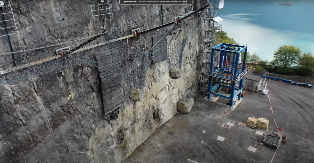 Die bereits 2024 zugelassene ROCCO-Steinschlagschutz-Barriere mit 3000 kJ Nennenergie wird mit zwei Blöcken mit je 50 Prozent der maximalen Energie belastet. Dabei zielt ein Einschlag ins Mittelfeld der Barriere, einer ins angrenzende Randfeld.