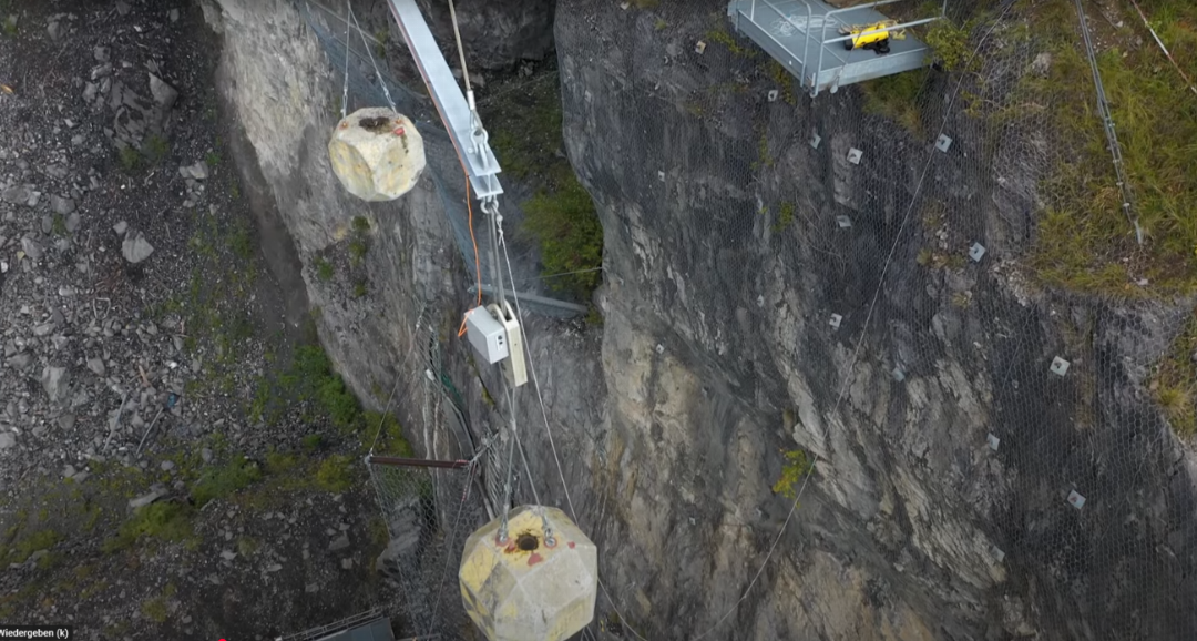 Geobrugg testete am 1. Oktober 2025 erstmals eine flexible Steinschlagschutz-Barriere, die zwei zeitgleichen Einschlägen standhalten muss: Und die Barriere hielt dem Mehrfacheinschlag stand. Die Testerkenntnisse werden in die Weiterentwicklung künftiger Schutzsysteme einfliessen.
