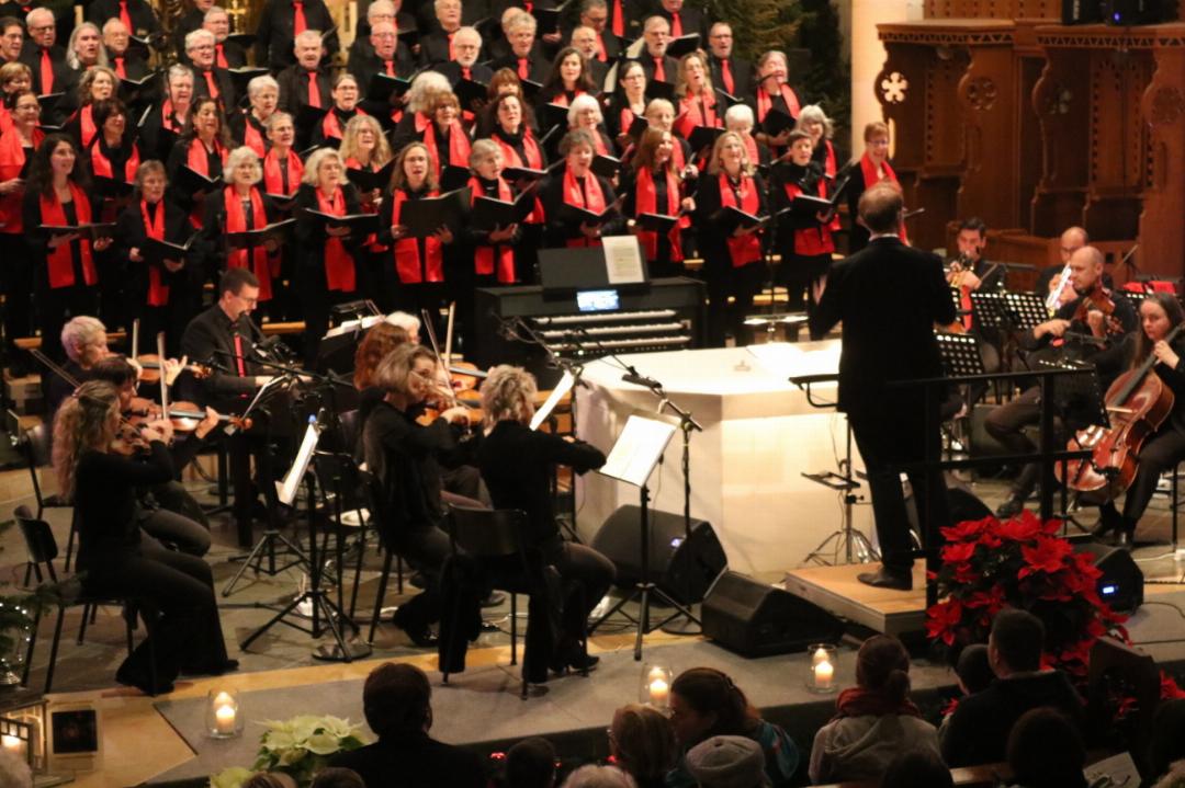 Bei einigen Liedern durften die wirklich zahlreichen Besucherinnen und Besucher miteinstimmen, bei eher unbekannten entlockte der Gesamtleiter Roman Lopar den Sängerinnen und Sängern jede Stimmkraft, die wohl bei vielen ZuhörerInnen grosse Emotionen entstehen liess. Und immer wieder entpuppten sich Orchester und Brass-Quintett nicht nur als begleitendes Instrumentarium sondern setzten manches musikalische Ausrufezeichen – etwa mit «Jazz Pizzicato» und «Sleigh Ride» von Leroy Anderson, wobei sich bei letzterem die Trompete als wieherndes Pferd outete.