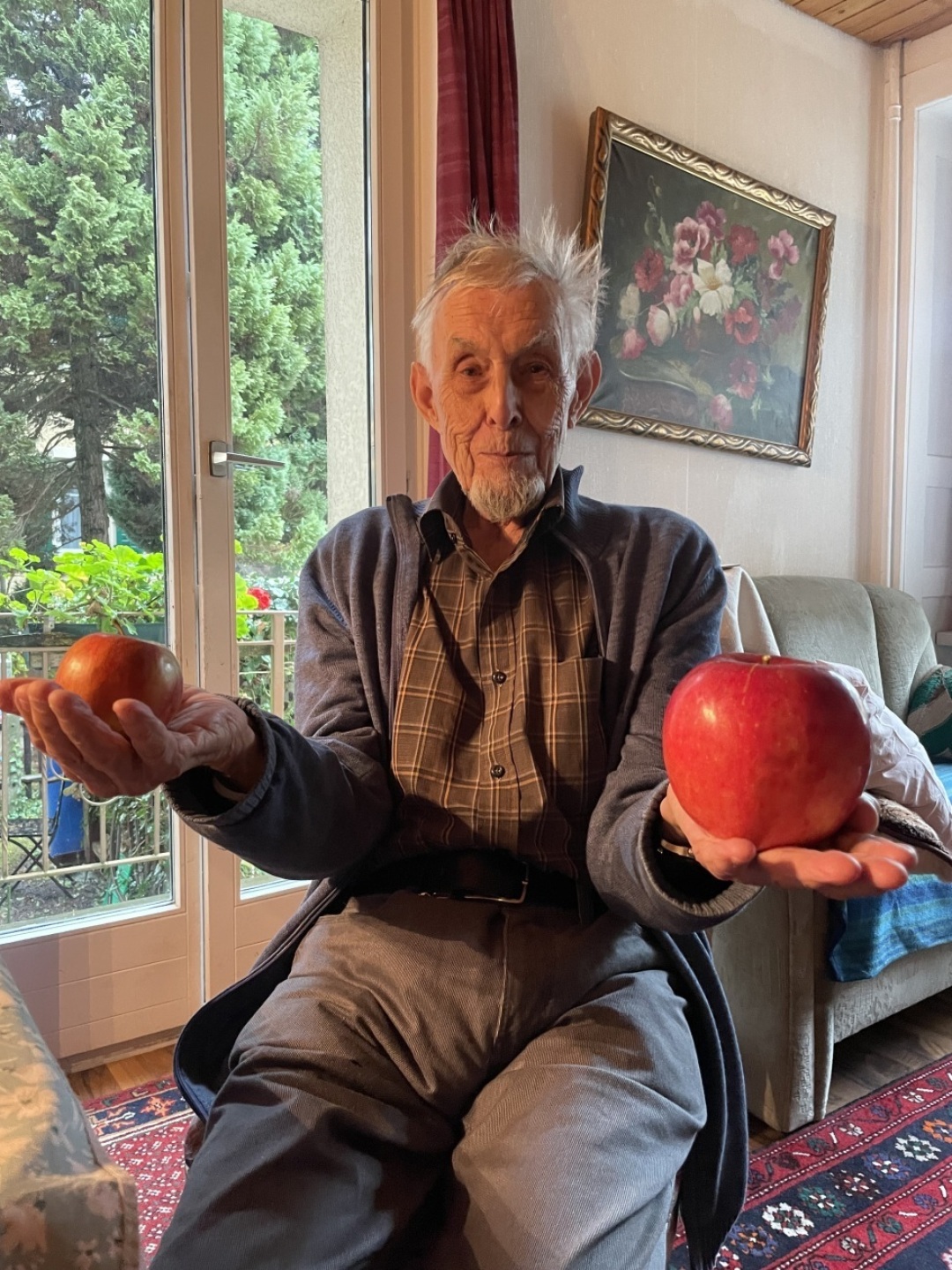 Dieser Apfel ist kein gewöhnlicher Snack − er ist ein echtes Naturwunder! «Mit stolzen 450 Gramm bereitet er uns allen grosse Freude.»