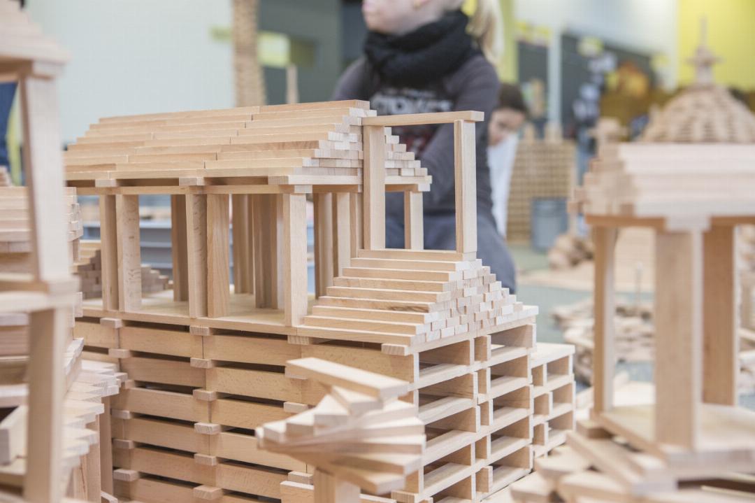 Mit 80’000 Holzklötzen bauen