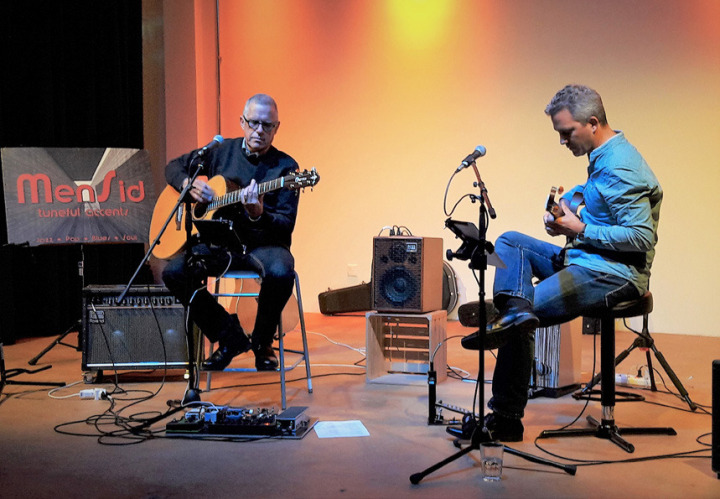 Das Konzert findet inmitten der Kunstausstellung «Simply two No 4» statt. Das ergibt eine ganz besondere Atmosphäre, wenn Eddy Sidamgrotzki (Git/Voc) und Andy Mensch (Git/Voc) in die Saiten greifen und ihre klangvollen und dynamischen Interpretationen aus den Bereichen Pop, Latin und Jazz zum Besten geben, wobei Eddy Sidamgrotzki mit seinem aussergewöhnlichen Gesangstalent zwischen den Sprachen und Stilprägungen der Songs hin und her wechseln kann.