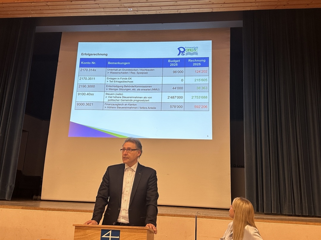 Es hat beinahe Tradition, dass die Rechnung der Uttwiler Primarschule besser als budgetiert abschliesst. Auch 2025 war dies der Fall. Grund dazu: deutlich höhere Steuereinnahmen, vor allem aus der Grundstückgewinnsteuer. War ein Verlust von 292’900 Franken budgetiert worden, resultierte schliesslich ein Gewinn von 25’000 Franken. Schulpfleger Adrian Gut erklärte im Detail die Hintergründe des positiven Rechnungsabschlusses. In der Bilanz wird gemäss den Vorgaben der Rechnungslegung die Neubewertungsreserve erfolgswirksam aufgelöst und in den Erneuerungsfonds Bauten überführt.