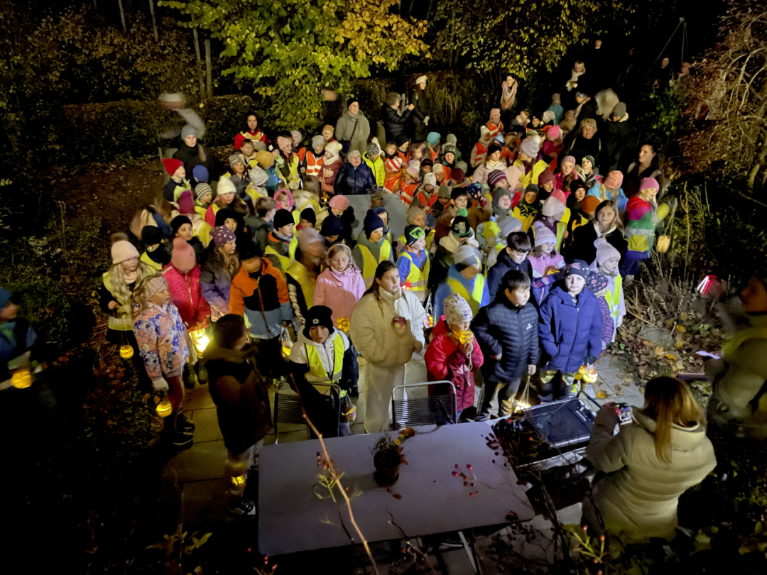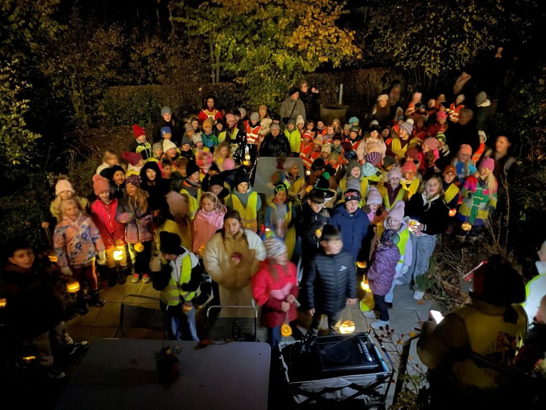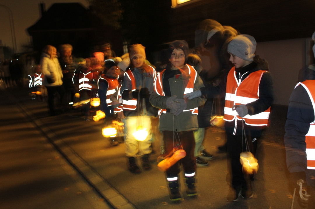 13.11.2025 Schule&Bildung, SalmsachLicht und Freude in die dunkler werdenden Abende brachten die Kinder vom Berglischulhaus Salmsach mit ihrem «Räbeliechtliumzug» in die Dorfgemeinschaft. Die Räben hatten sie zuvor mit den Eltern geschnitzt. Am Donnerstagabend starteten die Kinder vom Kindergarten bis zur vierten Klasse zum Umzug das Dorf hinunter, begleitet von Lehrkräften, Eltern und Freunden. Überall hatten die Leute «Lämpli» aufgestellt in froher Erwartung. Traditionell sangen die Kinder im Garten des Alters- und Pflegeheims Bodana ihre Lieder.