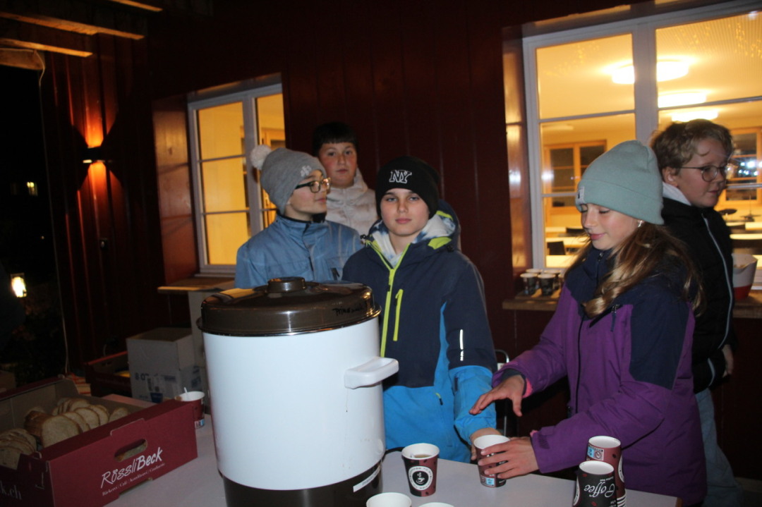 Beim alten Pfarrhaus scharten sich die Kinder nochmals zum gemeinsamen Singen auf dem Vorplatz. Vor der Aachstube wurde Punsch und «Sternlisuppe» offeriert.