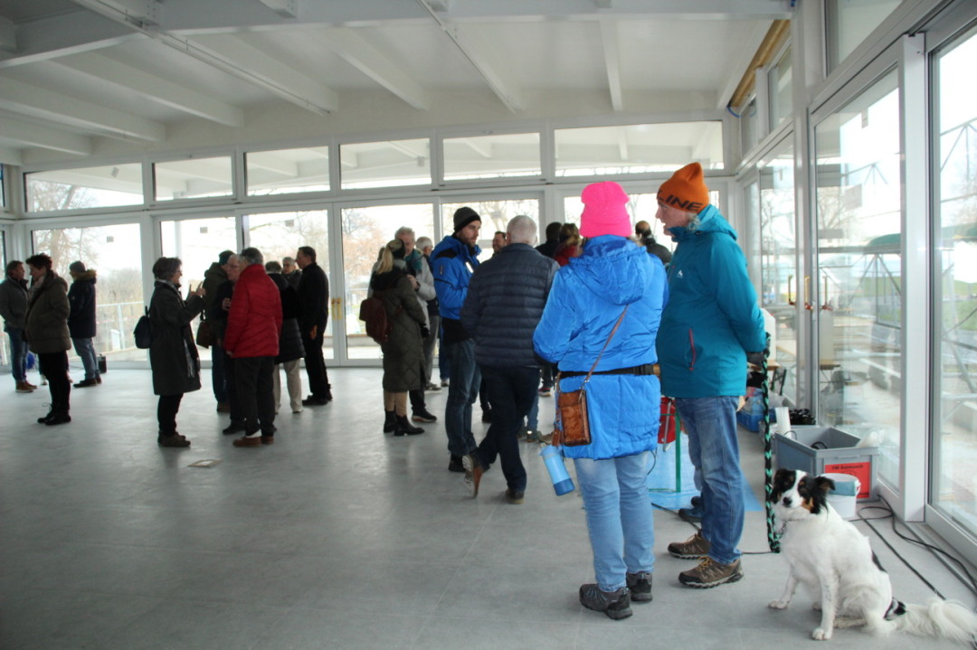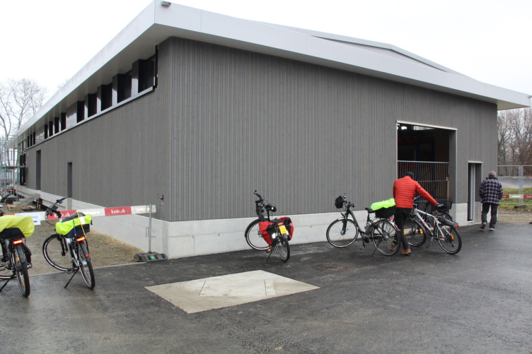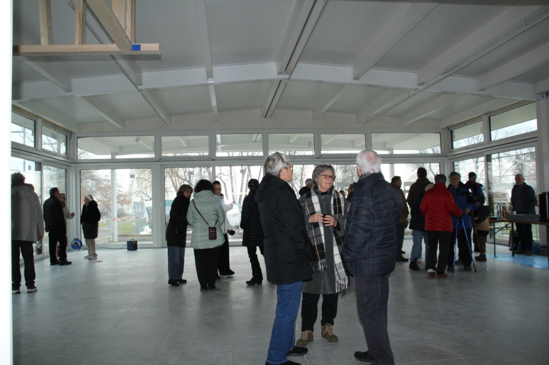 Bei Kaffee oder Punsch und Gipfeli standen die Besucher zusammen, begutachteten das Ganze oder schmiedeten Zukunftspläne. In der Nische, in der später Tische, Stühle und Bänke vor und nach Gebrauch verstaut werden, hingen Dokumentationen und Pläne von der Bauphase. Die Küche wird noch mit Geräten und Schiebewänden ausgestattet, sodass an der Einweihung am 9. Mai auch diese genutzt werden kann.