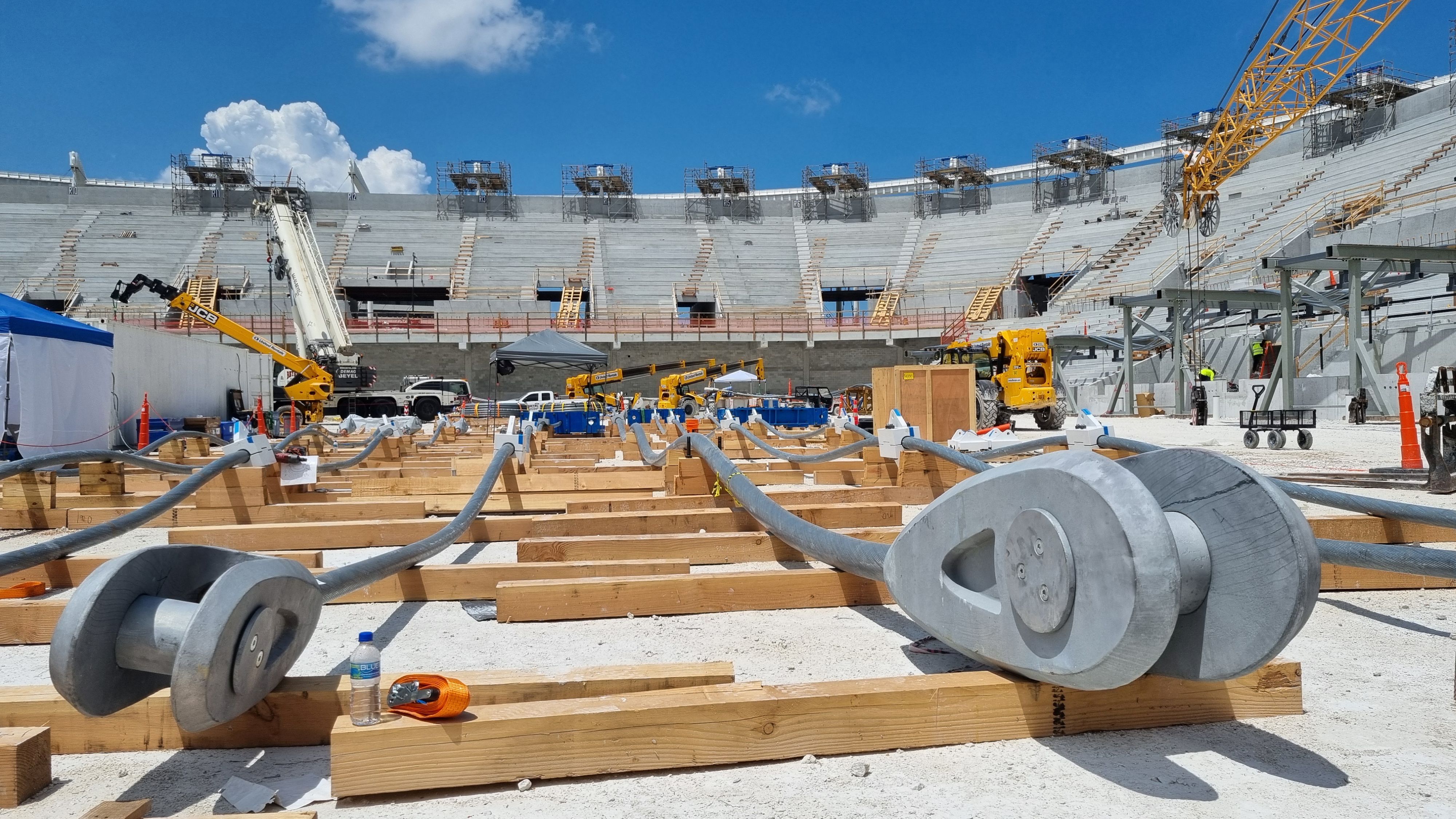 Das Projekt in Miami ist kein Einzelfall. Auch bei anderen internationalen Stadionprojekten sind Seile aus Romanshorn im Einsatz. Bereits 2020 kamen hochfeste Stahlseile von Fatzer beim Bau des Allegiant Stadium in Las Vegas zum Einsatz. Nach dem Umzug der Raiders von Oakland nach Nevada entstand innerhalb von nur 36 Monaten eines der technologisch fortschrittlichsten Stadien der USA. Auch nach Asien wurden vor Kurzem Seile geliefert: Beim derzeit entstehenden Guangzhou Football Park in China kommt ebenfalls das neu entwickelte 140-mm-Seil zum Einsatz.