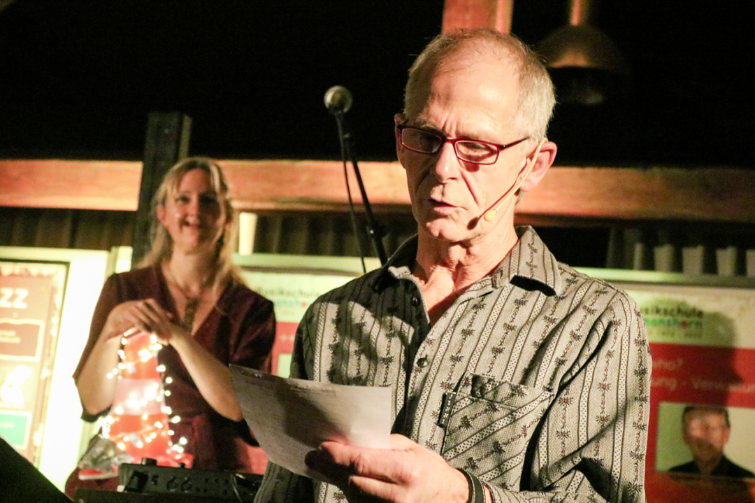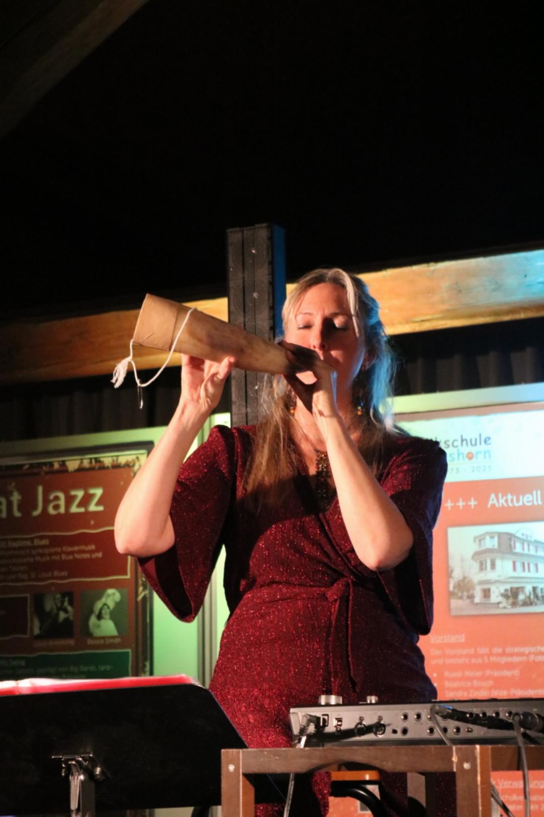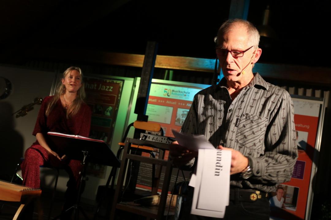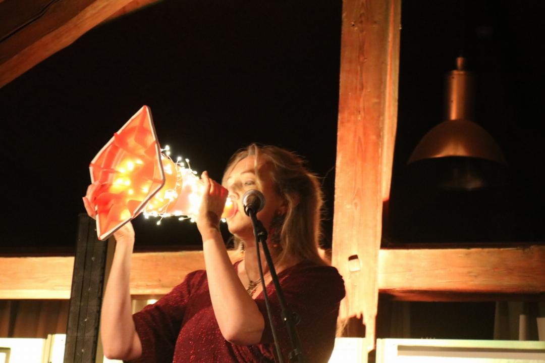 So unterschiedlich sie mit ihren Stimmen unterwegs sind, so oft treffen sie sich im Gesang und im Vers – so auch am Freitagabend, 28. November, im Museum am Hafen: Sonja Morgenegg sang «Herz, wo zieht es dich hin», Stöff Sutter erzählte vom Black-Friday-Konsumrausch, die Wildjodlerin entführte in nordische Sphären, der Poet gab vermeintliche Fremdwörter zum Besten. Wenn Reime zur Liebe ertönten, kombinierte die Sängerin Jodeln und Tango. Und genauso farbig wie sie ihr Jodeln präsentierte, waren auch die eingesetzten Instrumente, sprich Monochord, Rahmentrommel und Kuhhorn (aus Schweden). Auf eine spannende und zuweilen überraschende Weise spielten beide mit Dialekt, Fantasie(-wörtern), mit Stimmen und Stimmungen: Während Stöff Sutter den «Kaffeemaschinenmuffel» oder die «Hymne an die Frau» zum Besten gab, sang Sonja Morgenegg von der «Hymne an den Mann», von «Sonnenaufgang» und «Sehnsuchtsjodel».