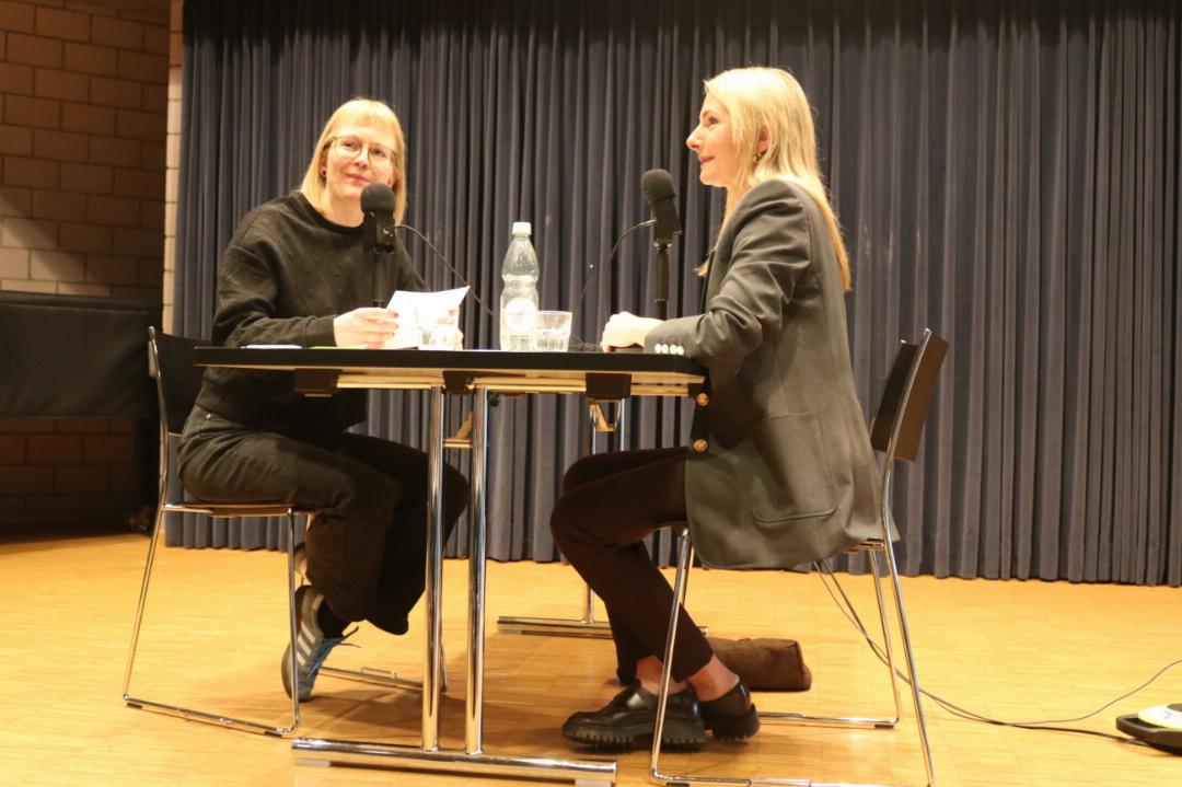 27.11.2025 Kultur&Natur, RomanshornZwei Frauen im Gespräch: Nicole Egli ist Geschäftsfrau, Umweltingenieurin, Mutter und Politikerin. Susanne Giger ist Redaktorin, Medientrainerin und Verwaltungsrätin. Beide erzählen ihre Geschichte im Podcast «beta.gamma». Zwei Kantiklassen hörten interessiert zu.