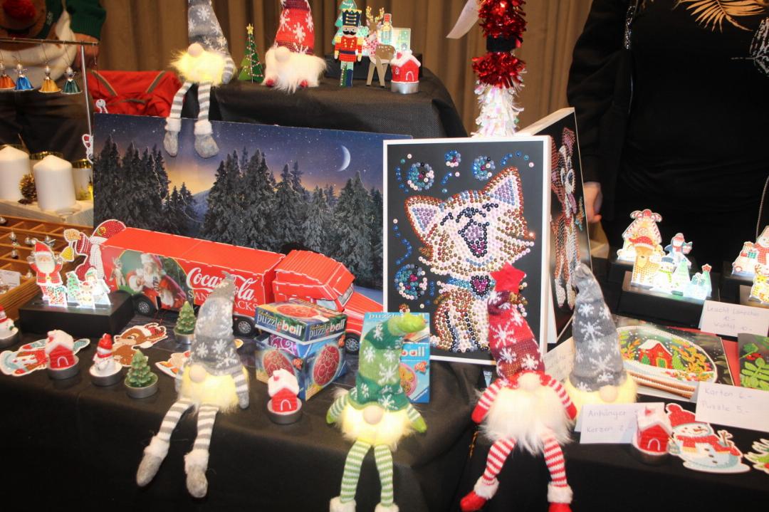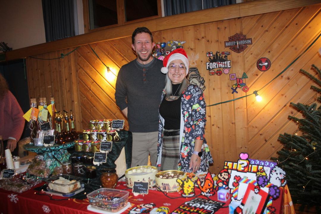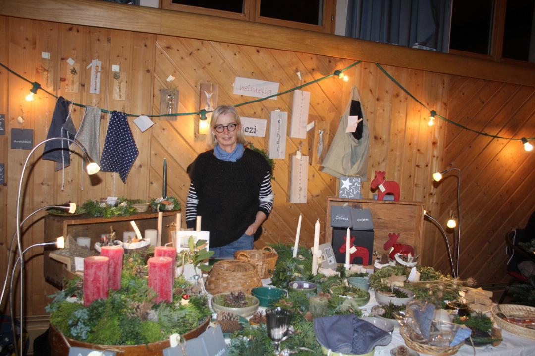 Mit Lichterketten geschmückte Tannenbäumchen und der Duft nach Raclette, Kürbissuppe, Hotdogs und Glühwein lockten am Freitagabend in den Saal mit den bunten Ständen.