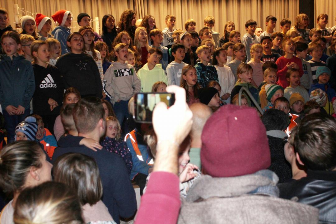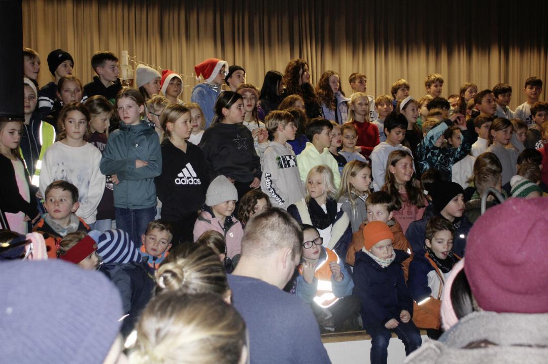 Die Uttwiler Kinder vom Kindergarten bis zur ganzen Primarschule sangen unter der Leitung von Roland Baumann und Gisela Plüss. «Zimetstern hani gern», «I wish you a merry christmas» und andere bekannte Weihnachtslieder vor dem dichtgedrängten Publikum.